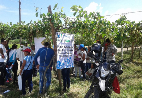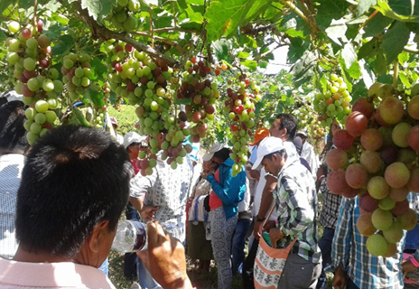 Productores recibiendo capacitación en manejo técnico de la uva.