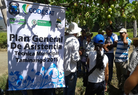 La charla estuvo dirigida por el experto en el cultivo de uvas José María Pulgarín, se hizo énfasis en la variedad, requerimiento edafoclimáticos del cultivo y propagación por medio de la enjertación; hubo buena participación e interés de los productores, muchos de los agricultores trajeron material de siembra para sus fincas en el Municipio de Taminango.